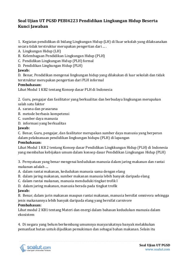 Soal Ujian Ut Pgsd Pebi4223 Pendidikan Lingkungan Hidup from image.slidesharecdn.com Kunci jawaban ini bisa menjadi panduan bagi orangtua saat membimbing para siswa di rumah. 20201107 soal uts k13 kelas 5 bahasa sunda download soal uts k13 kelas 5 plh diharapkan soal uts k13 kelas 5 semester 1 dan 2 beserta kunci jawaban ini merupakan salah referensi yang baik dan benar sesuai harapan anda bisa uts 2. Sep 24, 2015 · soal + kunci jawaban uts uas plh pendidikan lingkungan hidup semester 1 2016/2017 pos un sd/mi 2017 | prosedur operasional standar ujian nasional/sekolah sd tahun 2016/2017 soal + kunci jawaban uas ukk plh kelas 5 v lima semester 2 genap 2020 (bagian 1) 3/7/2021 · soal kunci jawaban uas ukk plh kelas 5 v lima semester 2 genap 2020 bagian 2 soal ipa us un try out jawaban sd mi 2020 bagian 4 final sesuai indikator soal kunci jawaban sains ipa sd kelas v 5 semester 2 materi energi magnet pesawat sederhana dan sifat sifat cahaya. Soal plh beserta jawaban soal plh kls xi. Ngawur blog kamis, 16 mei 2013. Aug 19, 2021 · download soal ukk plh kelas 1 semester 2. Supaya sekolahnya terlihat bagus b.