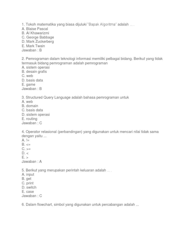 Berikut ini adalah contoh dari fungsi manipulasi string. Soal dan jawaban algoritma blog newbie. Contoh soal tentang bahasa pemrograman dasar untuk siswa dan guru, soal pilihan ganda tentang pemrograman dasar ini sudah dilengkapi dengan jawaban. Kumpulan soal dan jawaban algoritma dan pemrograman (2). For, while dan do while | kelas … buatlah contoh algoritma dengan membuat program dan flowchart …